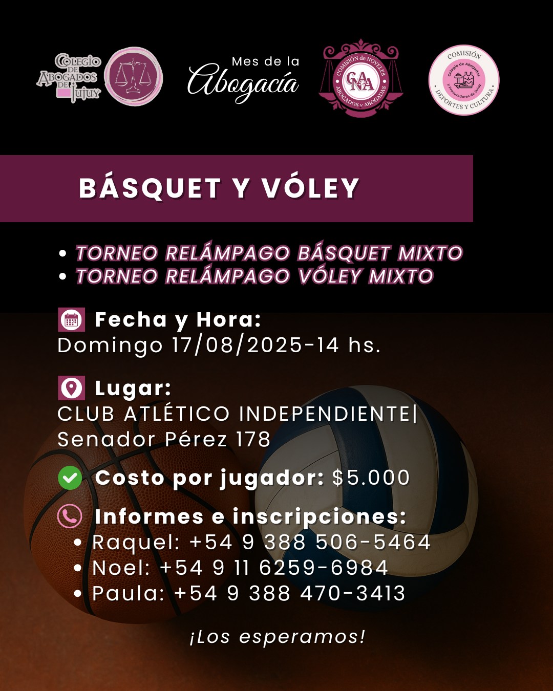Torneo relámpago de BÁSQUET y VOLEY Torneo relámpago de BÁSQUET y VOLEY LA COMISIÓN DE DEPORTE Y CULTURA en conjunto con la COMISIÓN DE NÓVELES ABOGADOS Y ABOGADAS, te invitan a Leer Más » 13/08/2025