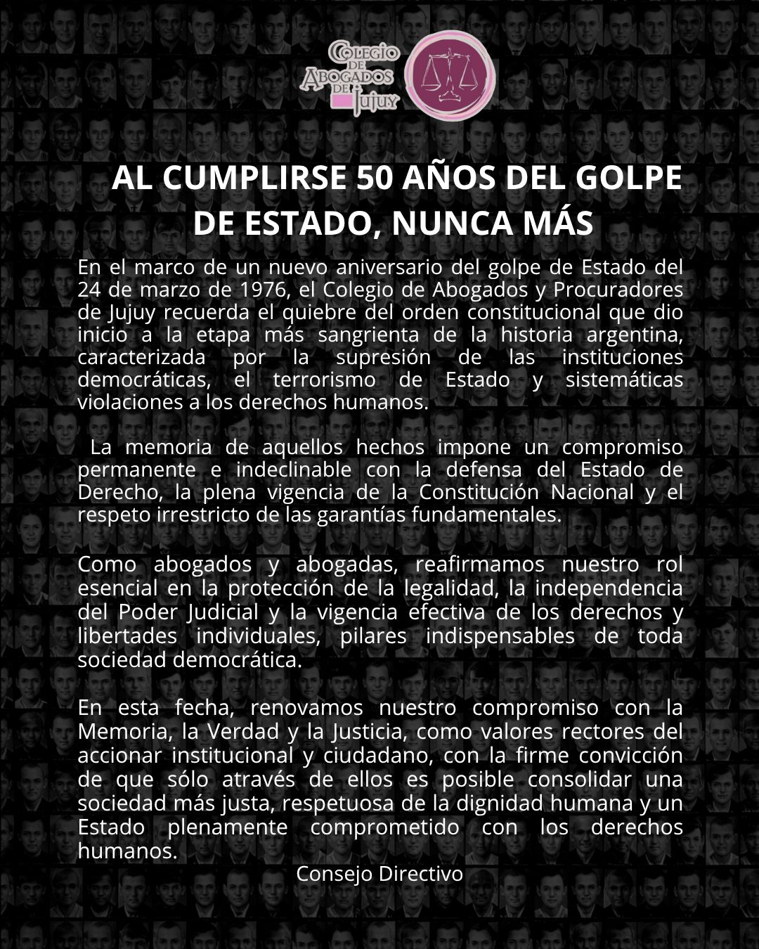 En el día de hoy, el Colegio de Abogados de Jujuy conmemora el 84° aniversario de su fundación, reafirmando su compromiso histórico con la defensa