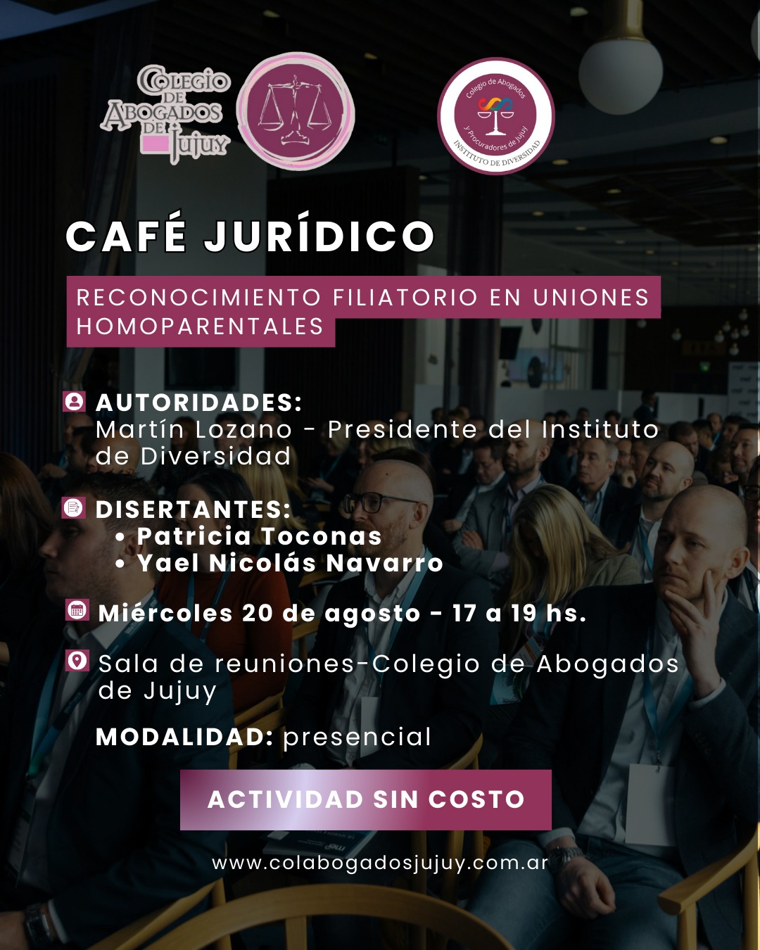 Reconocimiento Filiatorio en Uniones Homoparentales Fecha: Miércoles 20 de agostoHora: 17 a 19 hsLugar: Sala de reuniones – Colegio de Abogados de JujuyModalidad: PresencialActividad sin