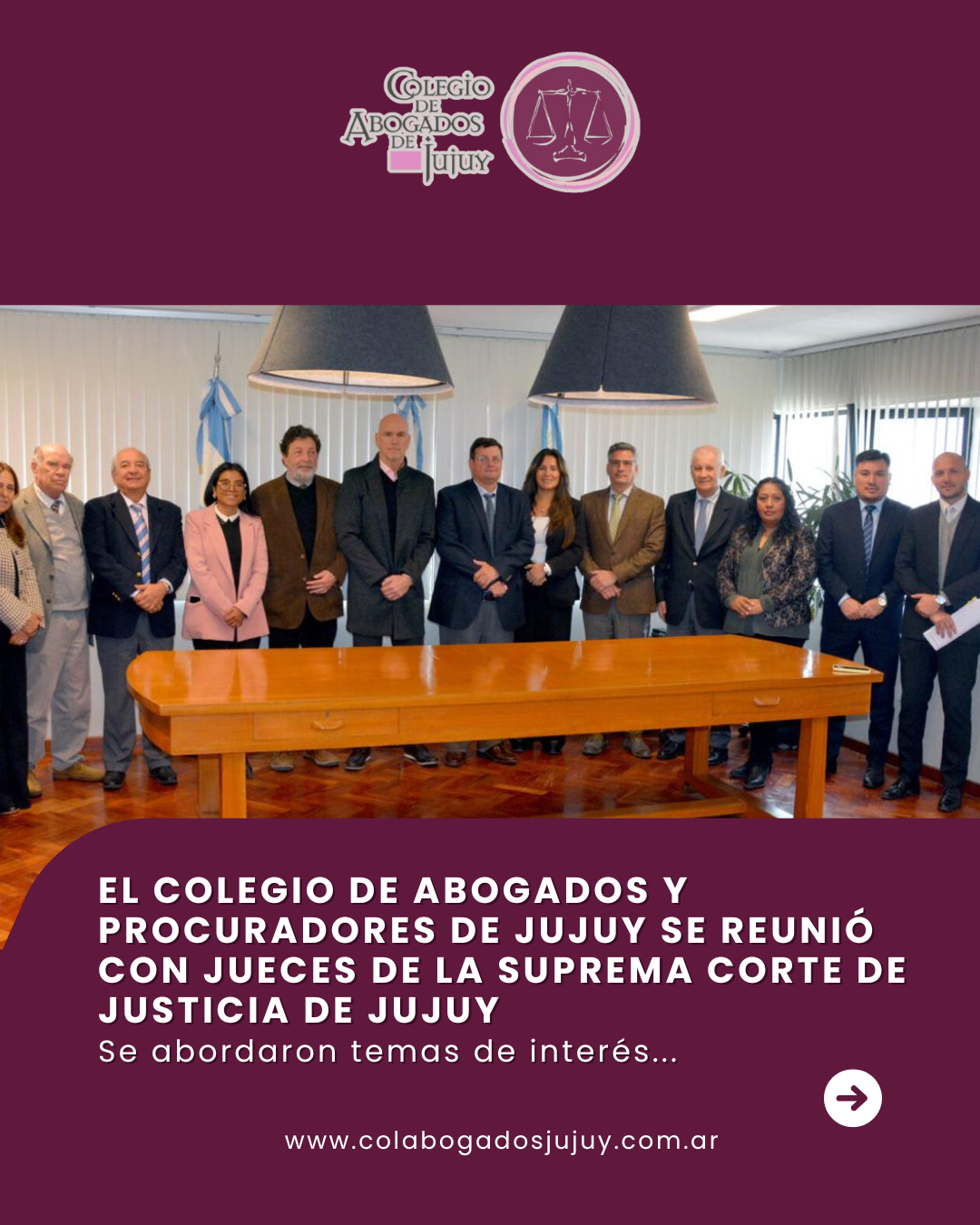 Se informa que se llevo a cabo una reunión institucional entre el Consejo Directivo, el Tribunal de Ética del Colegio de Abogados de Jujuy con