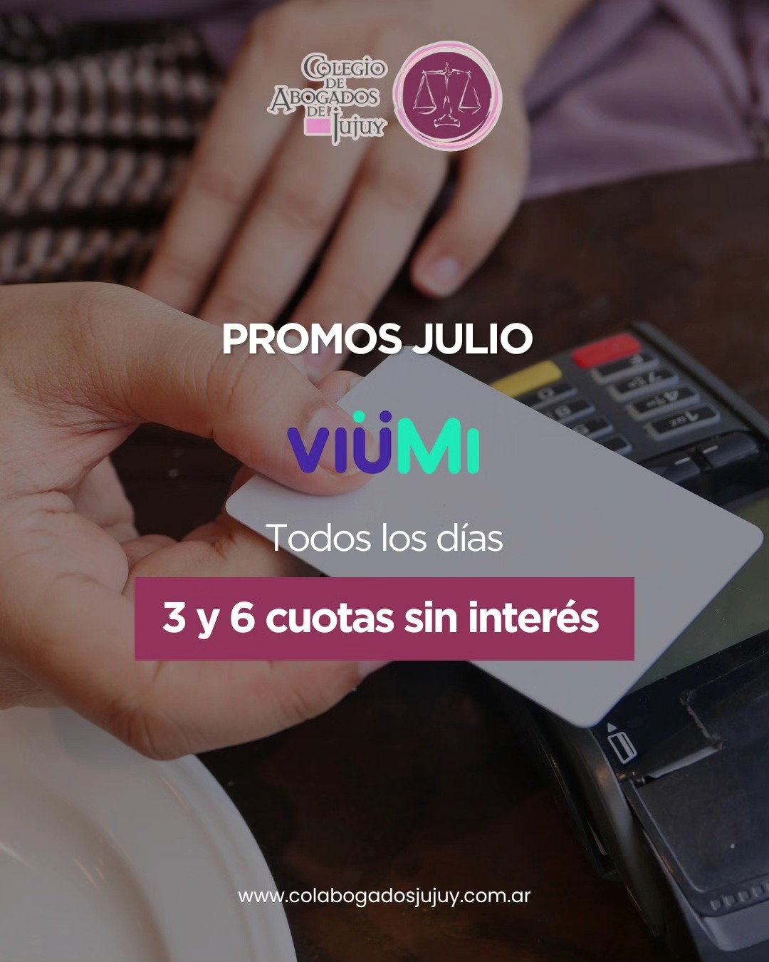 ¡PROMOS DE JULIO CON VIÜMI! Durante todo julio podés abonar en 3 y 6 cuotas sin interés con Viümi. ¡Aprovechá esta oportunidad todos los días