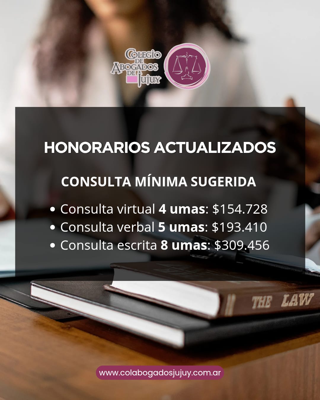 Nuevos honorarios actualizadosEl Colegio de Abogados y Procuradores de Jujuy informa a sus matriculados que ya se encuentran vigentes los nuevos valores de honorarios profesionales.