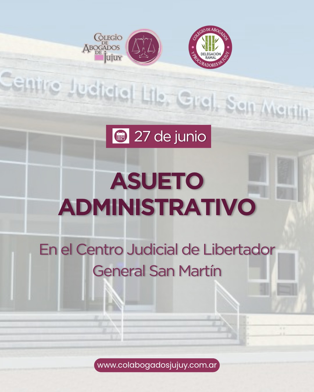 ASUETO ADMINISTRATIVO EN EL CENTRO JUDICIAL DE LIBERTADOR GENERAL SAN MARTÍN ESTE VIERNES 27 DE JUNIO La Suprema Corte de Justicia resolvió adherir al Decreto