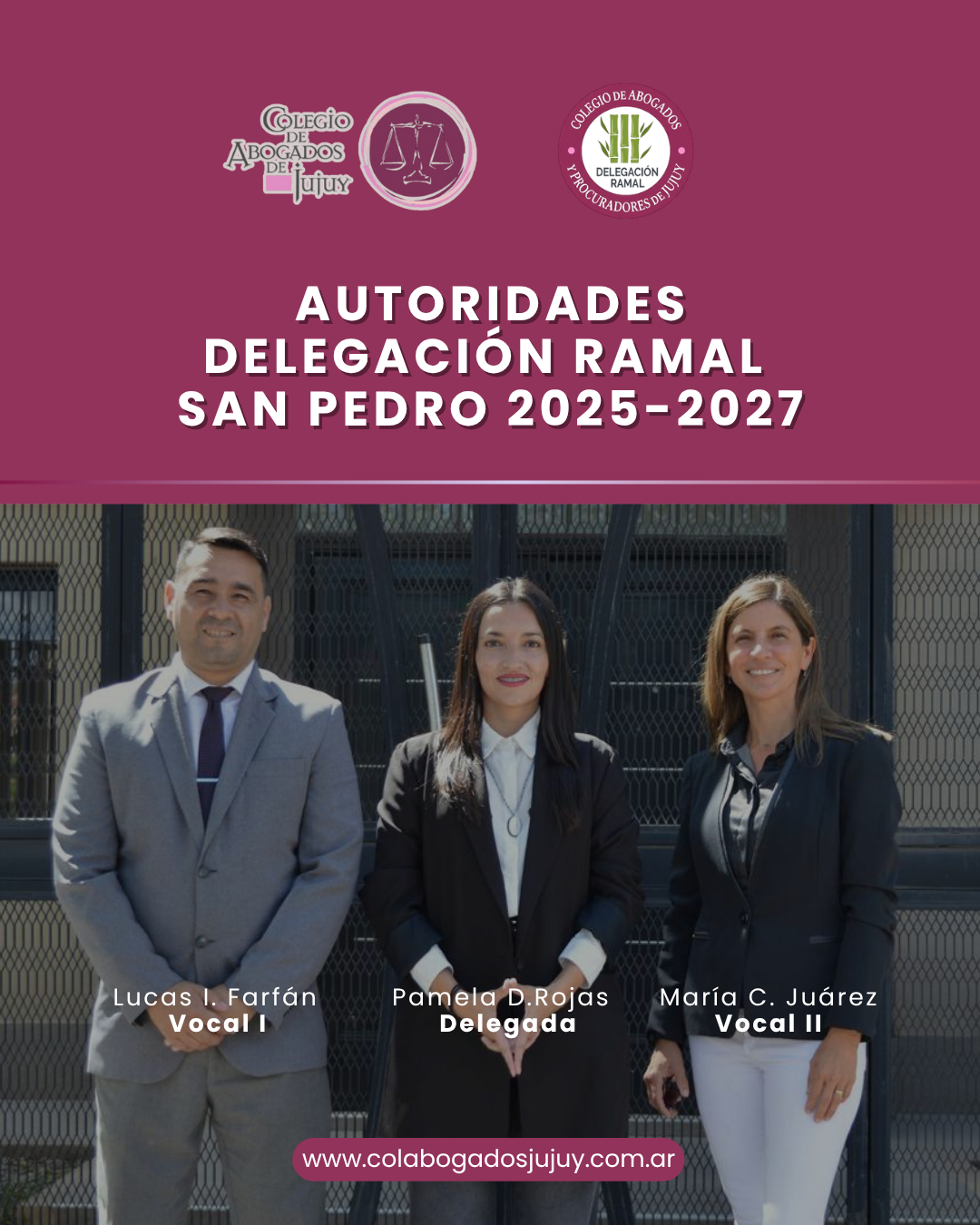 El Colegio de Abogados y Procuradores de Jujuy informa: Como resultado de las últimas elecciones, fueron designadas las nuevas autoridades de la Delegación Ramal San