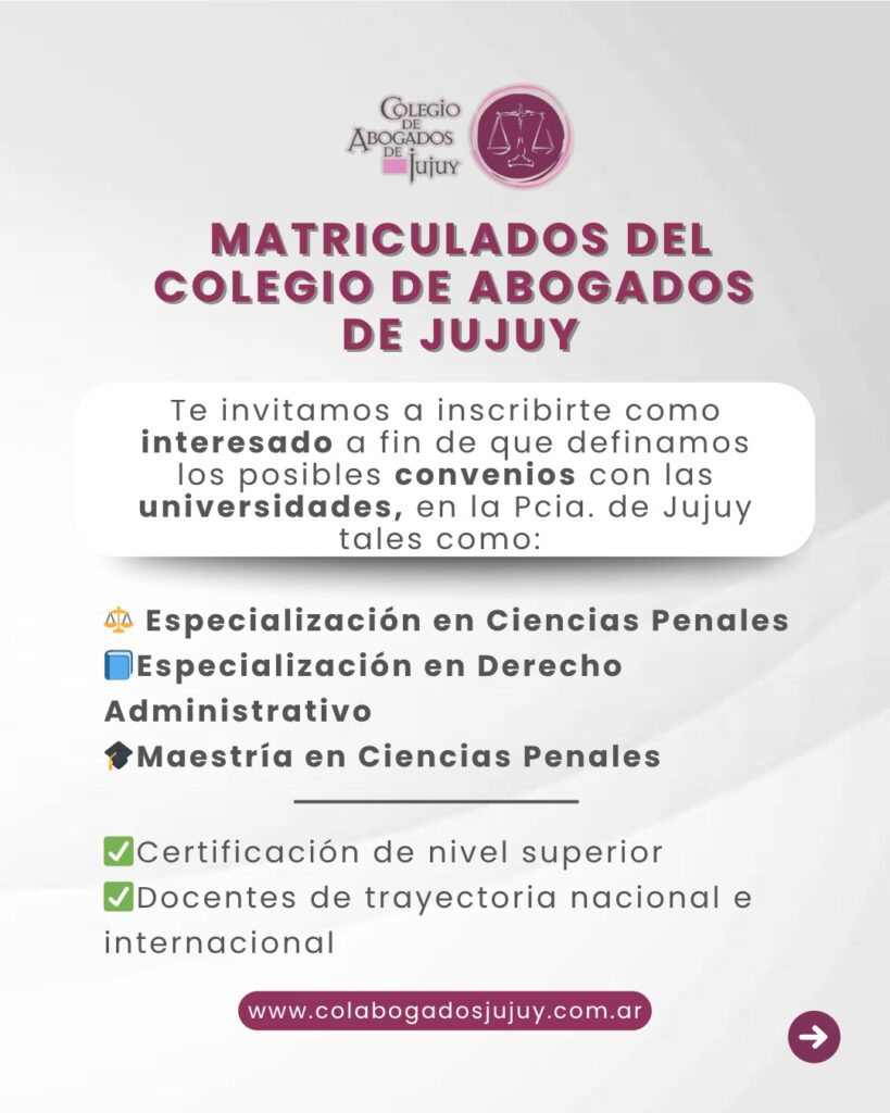 Por eso, te invitamos a inscribirte como interesado a fin de que definamos los posibles convenios con las universidades, pensadas especialmente para el ejercicio profesional en la Provincia de Jujuy tales como: