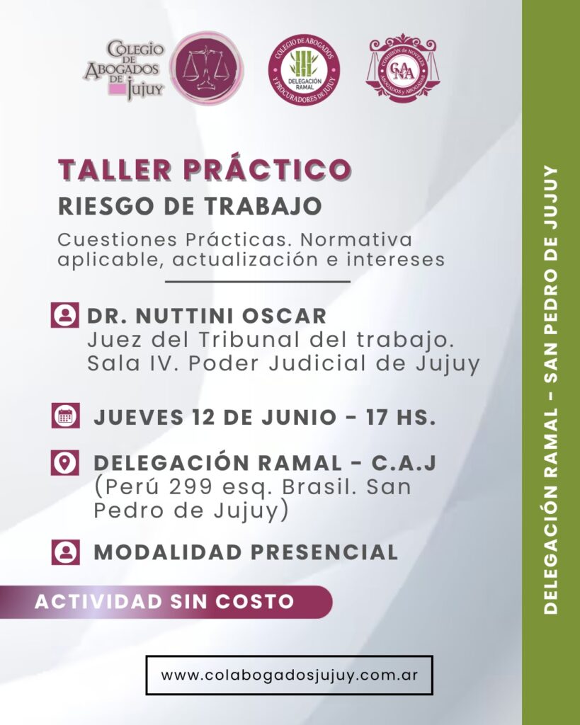 LA COMISIÓN DE NÓVELES ABOGADOS Y ABOGADAS y la DELEGACIÓN RAMAL, te invitan a participar del taller sobre: